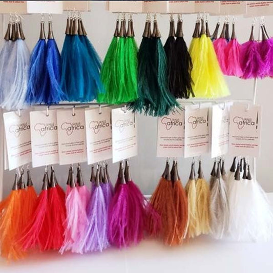 Ostrich Feather Keyring Handbag Charm With Leather Top