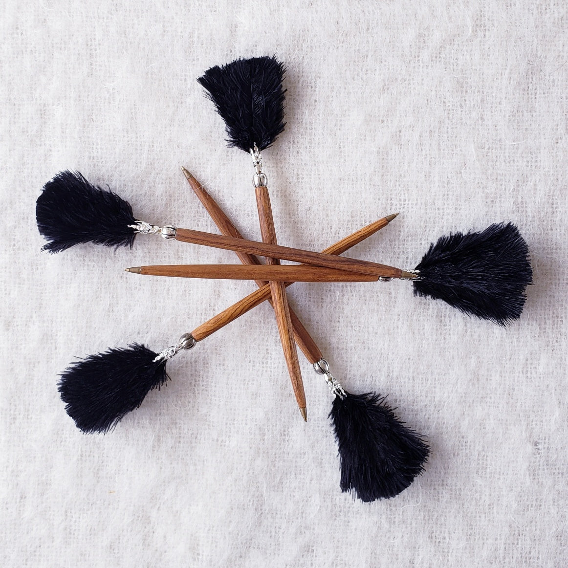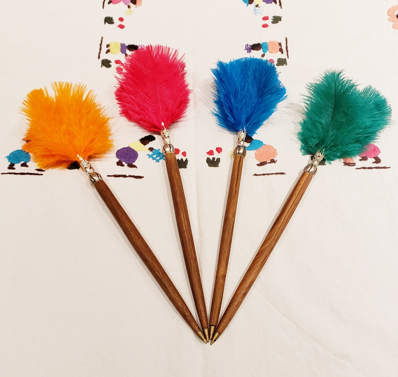 Handmade Pen fashioned from Olive Wood (already fallen), Ostrich Feathers, and Silver Beads.